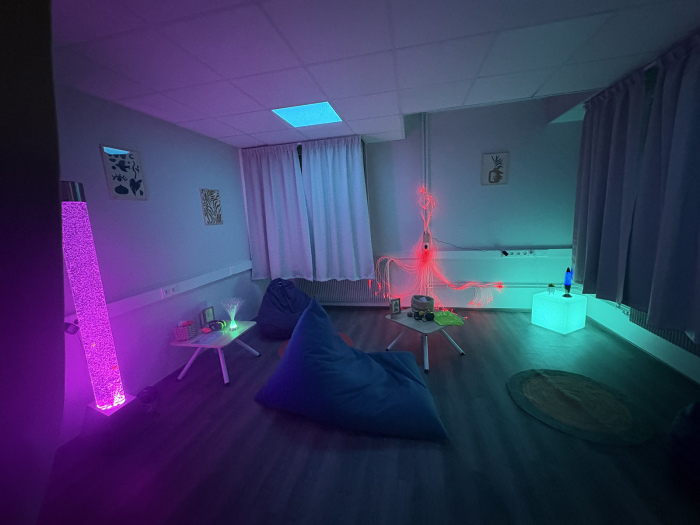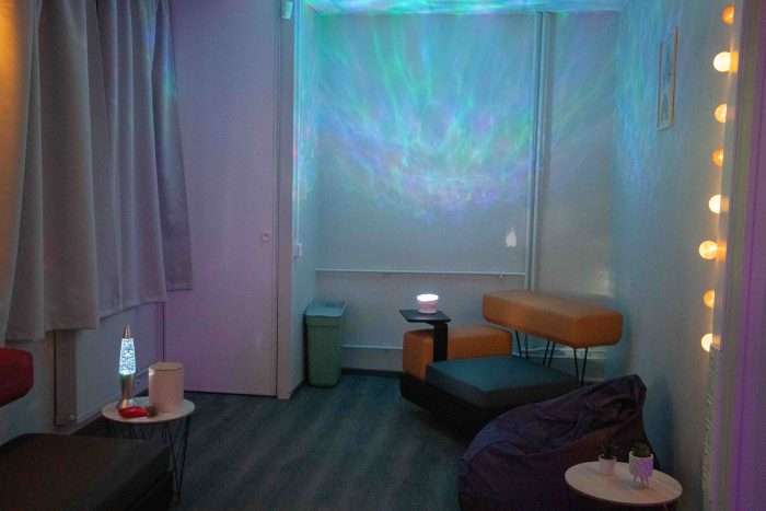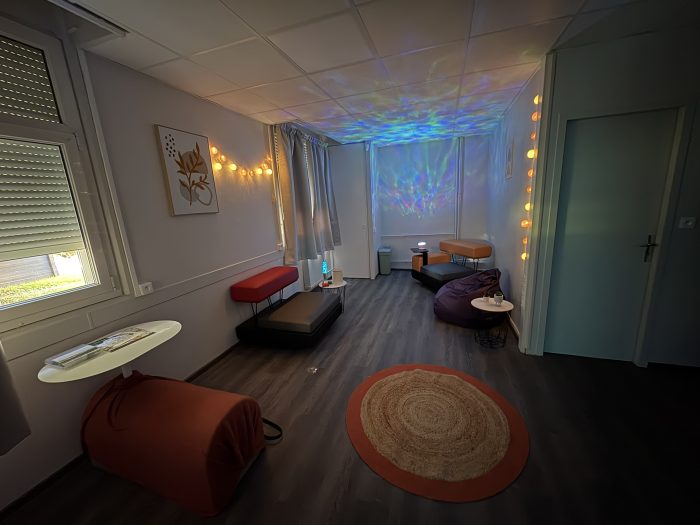 Espace multisensoriel ouvert à tous les étudiants (sur simple réservation), il est conçu pour favoriser le bien-être, la relaxation et l’éveil des sens.